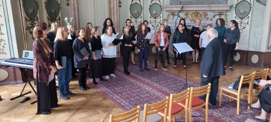 Včera jsme se sešli v počtu 26 rozjásaných zpěvaček, a úspěšně studovali čtyři "nové" skladby - Myslivečkovo NOTTURNO, ukrajinskou lidovou ŠČEDRIK, katalánskou lidovou EL ROSSIGNOL a černošský spirituál
